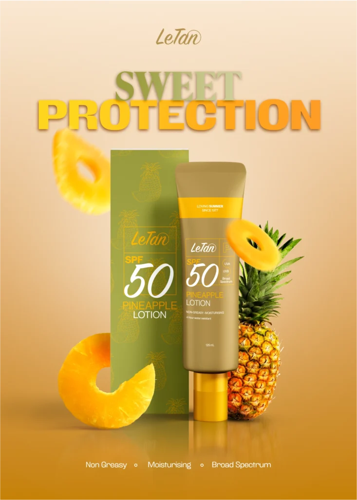 This series of ads was created as part of a rebranding exploration for LeTan, with the goal of making their SPF range feel modern, bold, and flavorful. Each piece highlights a key product variant; Watermelon, Pineapple, and Coconut and translates its core ingredient into an instantly recognizable visual hook.